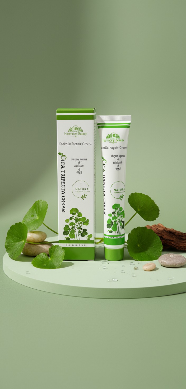 كريم مهدئ وعلاجي يحتوي على خلاصة السنتيلا الآسيوية (عشبة النمر)، يساعد على إصلاح البشرة التالفة، تهدئة الالتهابات، وتسريع عملية الشفاء الطبيعية للبشرة.